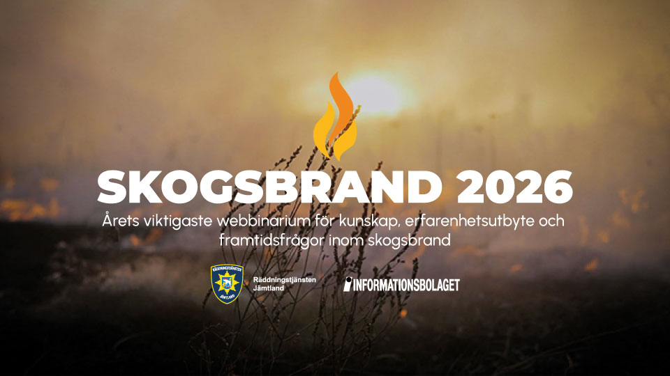 Skogsbrand 2026 arrangeras av Räddningstjänsten Jämtland i samverkan med Informationsbolaget. För sjätte gången samlar vi representanter från hela landet för att dela erfarenheter, stärka nätverk och tillsammans bidra till ökad förmåga och trygghet i arbetet med skogsbränder.